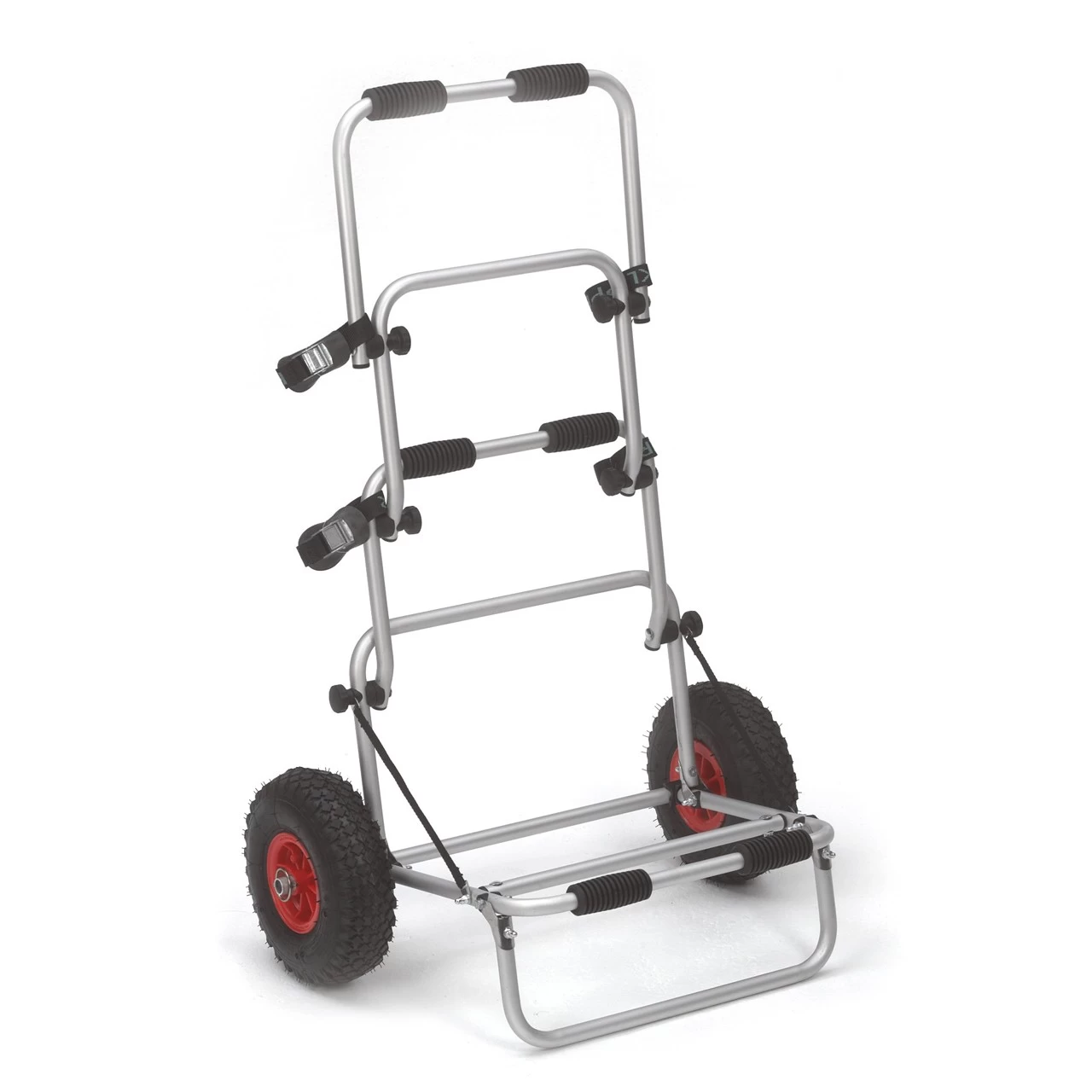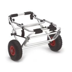 Der Eckla Faltbootwagen Foldy ist ein kompakter und vielseitiger Transportwagen für Schlauchboote und Faltboote. Der praktische Kanuwagen lässt sich, wie sein Name schon sagt, komplett ohne Werkzeug zusammenfalten und somit klein im Boot verstauen. Er lässt sich auf 3 Arten benützen. Aufgeklappt als Wagen für das zusammengefaltete Boot, für das aufgebaute Boot und klein zusammengefaltet für den Transport im Boot oder Auto. Der Eckla-Foldy besteht aus einer stabilen nichtrostenden Aluminium-Konstruktion. Die breiten luftbefüllten Räder verhindern ein Einsinken im Sand und ermöglichen dadurch einen bequemen Transport.